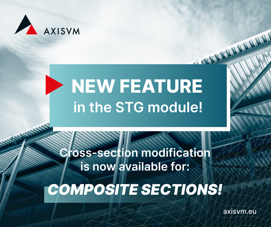 Based on user feedback, it is now possible to convert steel sections into composite sections in AXISVM. New feature in the Construction Stages (STG) module.